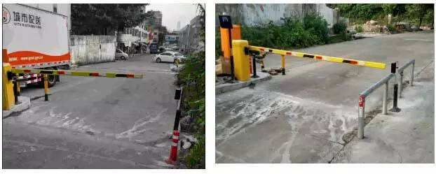 两边安装效果如图,经过大货车的通行检查,有地感和对射双保险,就自然没有货车砸车的问题出现了.