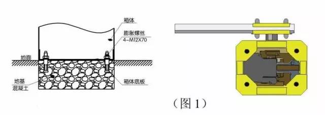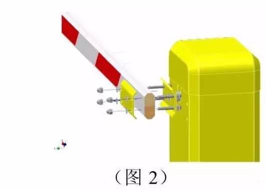 使用冲击钻分别在记号处打上膨胀螺丝钉,孔深70-80mm,并置入膨胀螺丝,调好箱体水平、垂直度、拧紧螺母。安装闸杆(见图2)